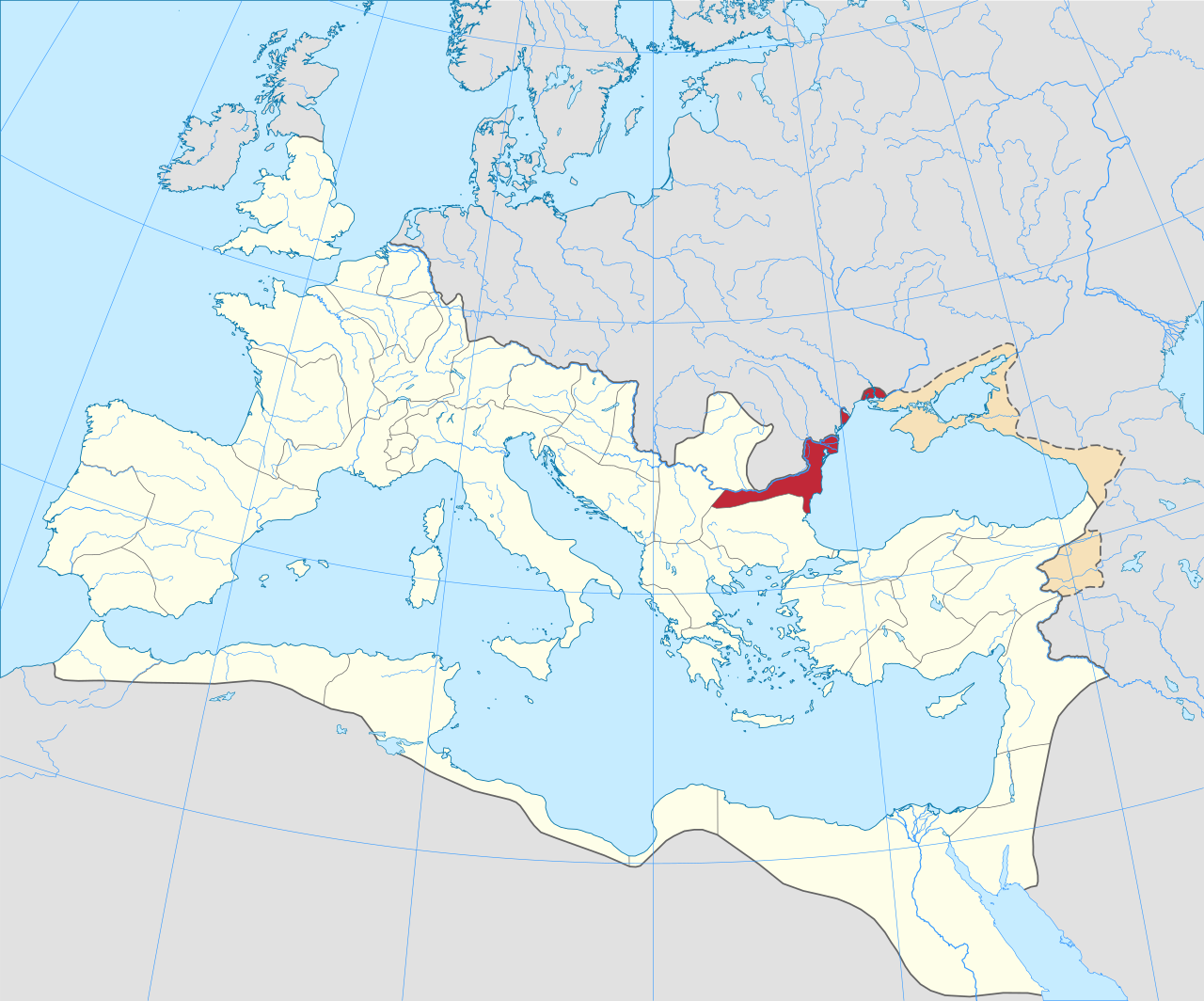 · AD 6? - 모이시아 : 세르비아의 다뉴브 강 동쪽과 남쪽 기슭, 북마케도니아의 북부, 불가리아 북부. BC 28년에 정복된 이 지역은 원래 마케도니아 속주의 군사 지구였음. AD 6년 바토니아 전쟁에서 속주 총독이 첫 언급됨. 85년 모이시아 수페리오르와 모이시아 인페리오르로 분리. 황제 속주.